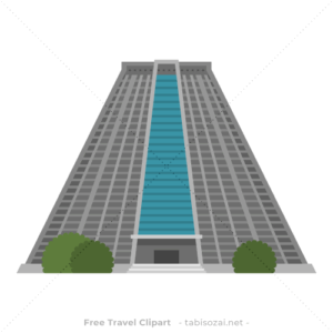 This illustration depicts Plaza de la Revolución in Havana, Cuba, a vast square known for its political history.